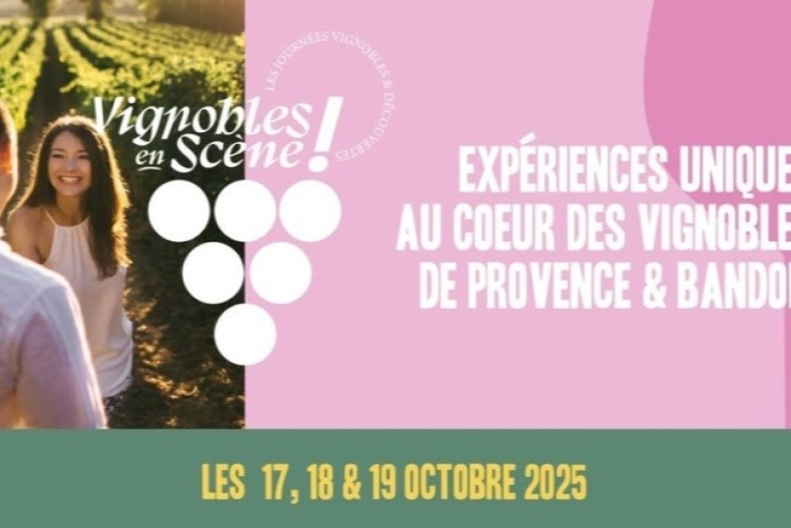 Les 17, 18 et 19 octobre simultanément dans l’ensemble des domaines de Provence et de Bandol, ne manquez pas la grande première de Vignobles en Scène, le tout premier rendez-vous national des destinations labellisées Vignobles & Découvertes !