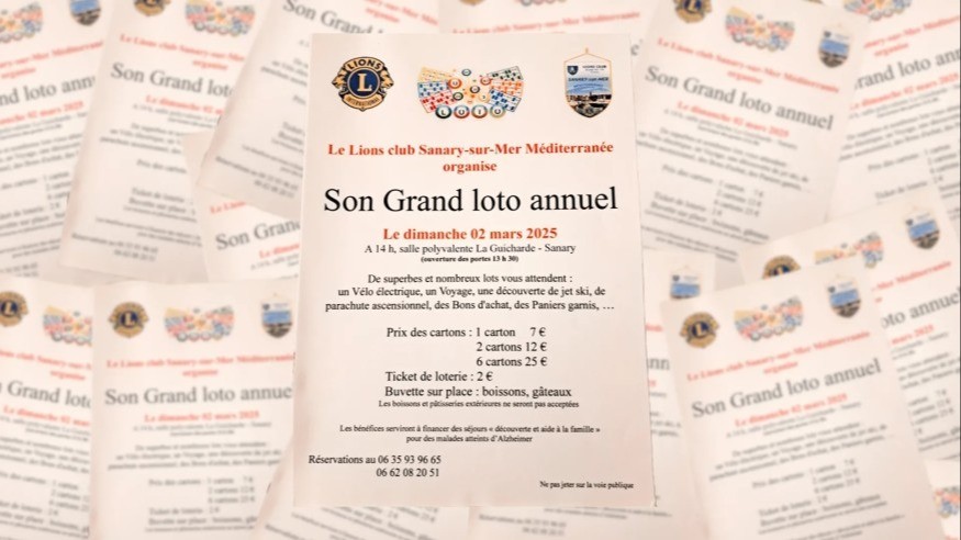 Grand loto organisé par le Lions Club de Sanary-sur-Mer Méditerranée. De superbes et nombreux lots vous attendent dont une trottinette électrique, un voyage, des bons d'achat, des paniers garnies…