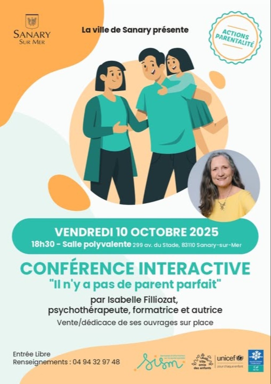La ville de Sanary-sur-Mer vous invite à la conférence interactive : "Il n'y a pas de parent parfait" par Isabelle Filliozat, psychothérapeute, formatrice et autrice ????