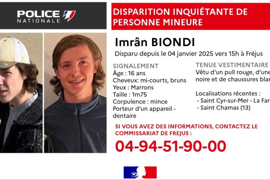 #DisparitionInquietante du jeune Imrân ▶️Si vous avez des informations, contactez le commissariat de Fréjus ☎️04-94-51-90-00Merci pour vos partages pic.twitter.com/2D6eXJ4apv