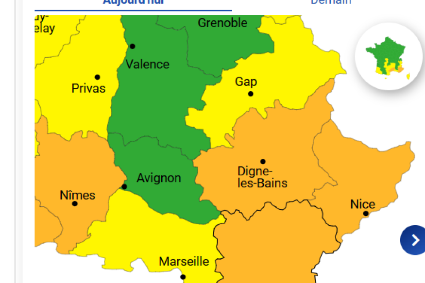 Bonjour. Ce Samedi, les conditions météo sont de plus en plus instables avec le déclenchement de fréquents orages qui laisseront échapper des pluies diluviennes. Ces fortes pluies pourront localement provoquer du ruissellement urbain et des inondations et faire également réagir certains cours d'eau.