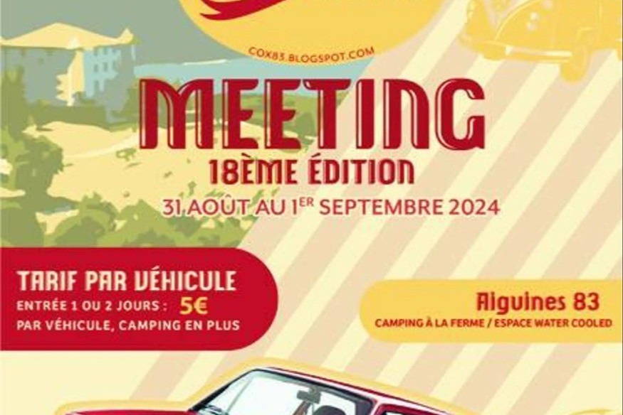 le 18e rassemblement national de véhicules anciens de marque Volkswagen à refroidissement à air coccinelle, combi, split, bay-window, 181, 1600, buggy, 1500, variant, et véhicules dérivés sur base VW refroidissement à air. Du samedi 14h au dimanche 18h. Lieu : camping à la ferme "Le Clos du lac", lieu-dit Le Loup à Aiguines. Exposition possible dans le pré communal le samedi à 18h30.