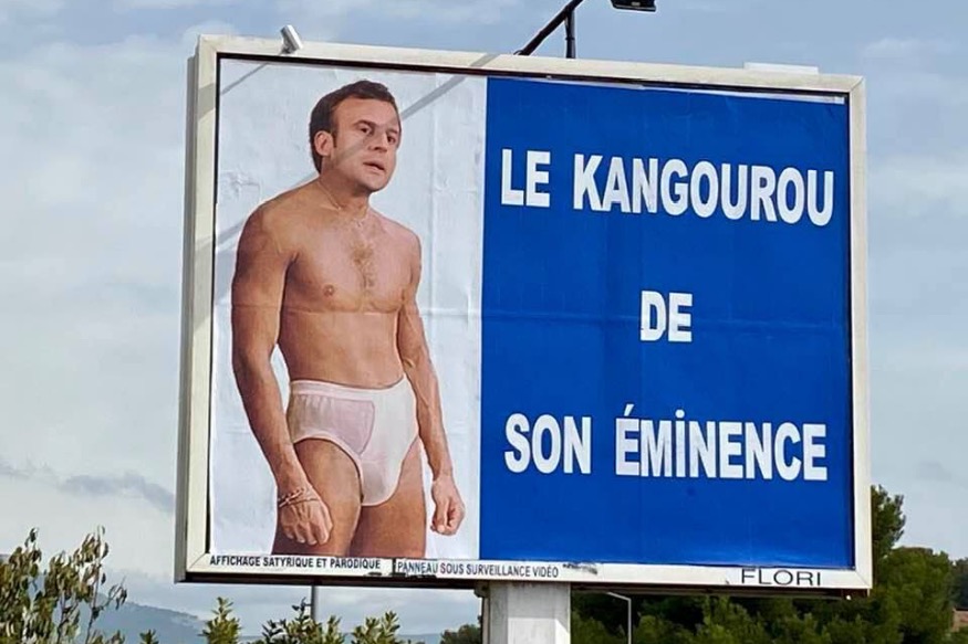 Ne soyez pas surpris si le chef de l’Etat apparaît en simple slip kangourou sur la route entre Toulon et la Seyne-sur-Mer. Il s’agit là d’une nouvelle caricature de Michel-Ange Flori, référence directe à l’affaire des sous-marins que la France devait vendre aux Australiens. Il y a quelques jours, l’afficheur varois avait été condamné à 10 000 euros d’amende pour injures publiques après avoir représenté Emmanuel Macron en Adolf Hitler.