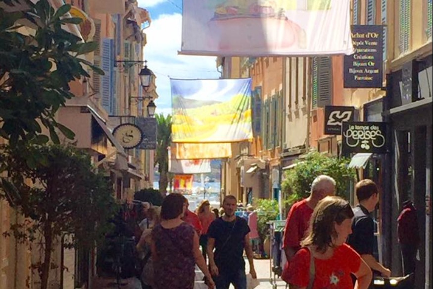 A Sanary, il va falloir lever les yeux en pleine rue pour en profiter. Les toiles de 54 artistes, venus de la région mais aussi de toute la France, ont été accrochées en hauteur un peu partout à l'occasion de l'exposition "L'art suspendu". Un guide pratique est à retrouver en mairie pour accompagner les déambulations des curieux.
