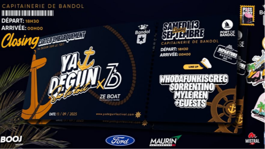 Le Samedi 13 septembre 2025, retrouvez le Ya Degun festival à la Capitainerie du Port de Bandol.