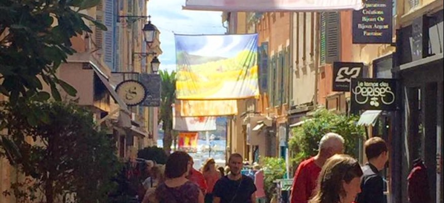 A Sanary, il va falloir lever les yeux en pleine rue pour en profiter. Les toiles de 54 artistes, venus de la région mais aussi de toute la France, ont été accrochées en hauteur un peu partout à l'occasion de l'exposition "L'art suspendu". Un guide pratique est à retrouver en mairie pour accompagner les déambulations des curieux.